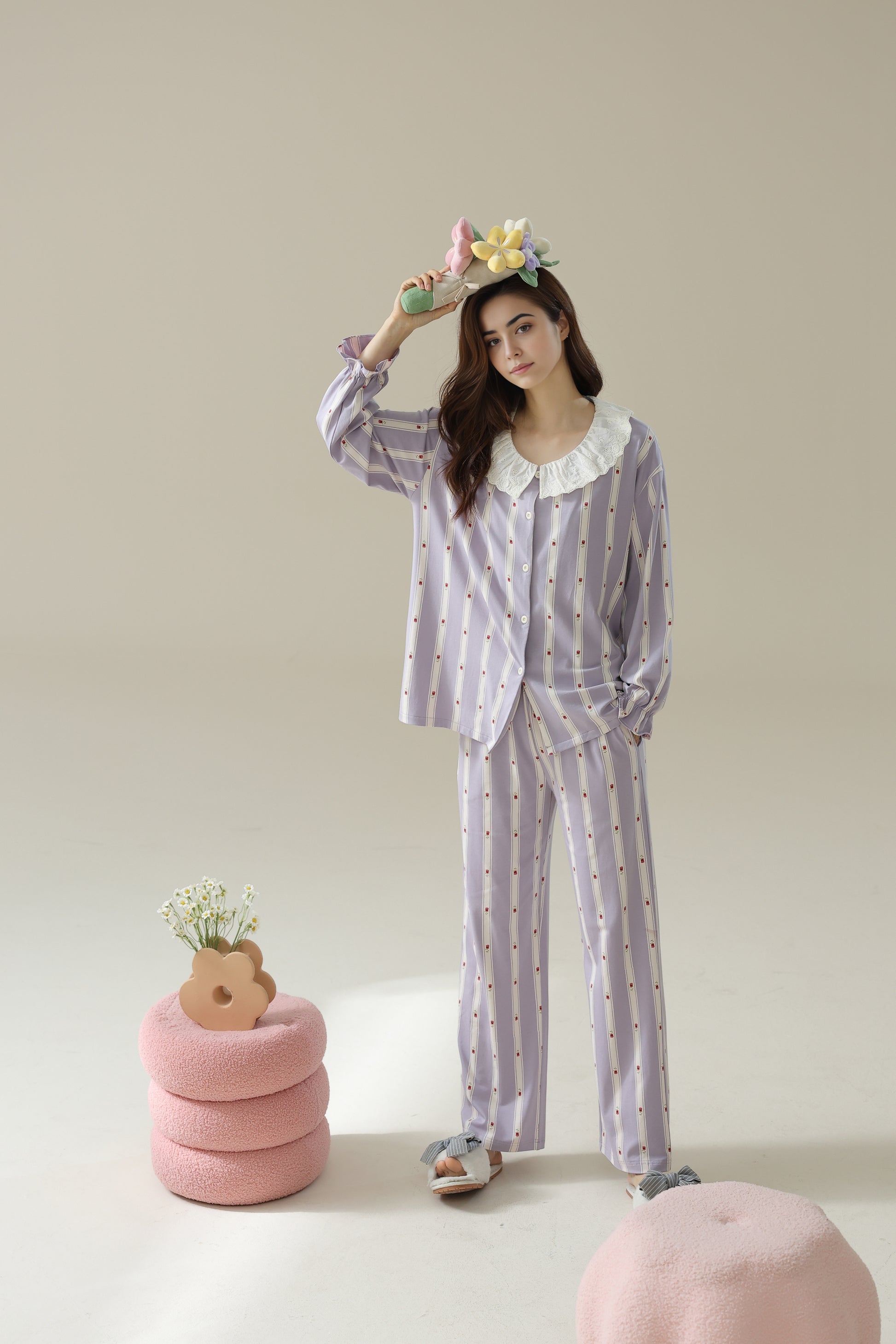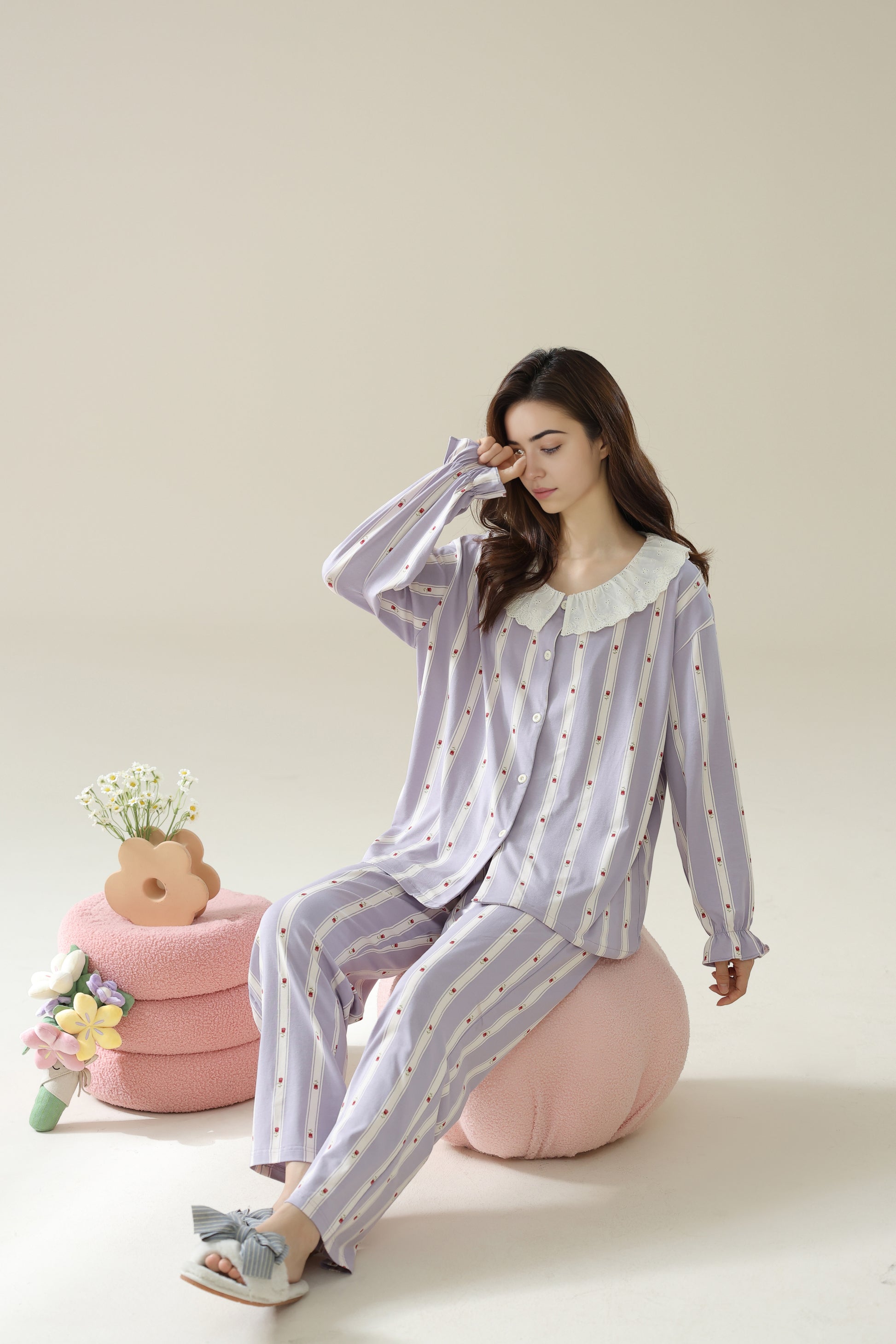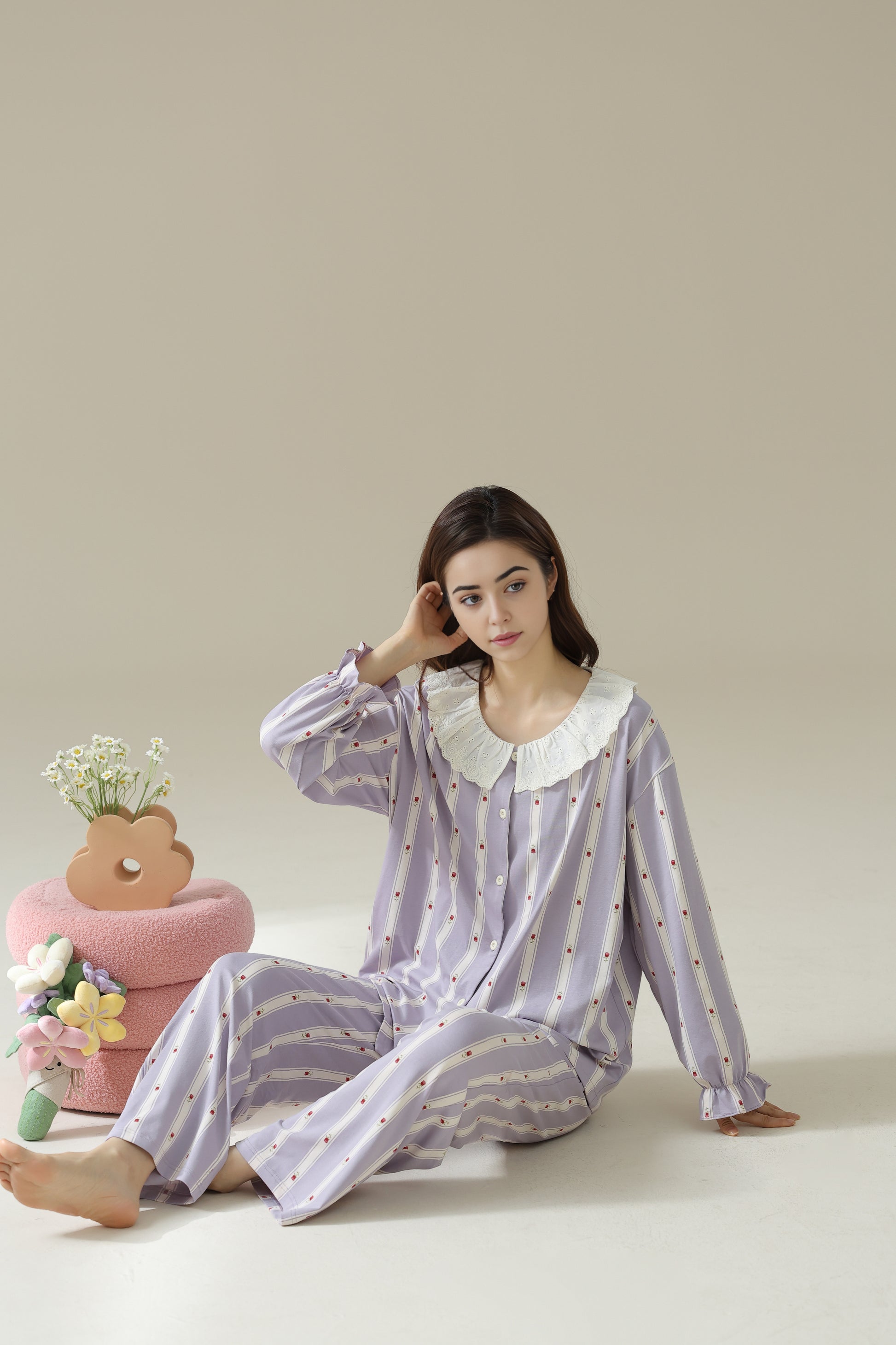A cozy and stylish pyjama set designed for ultimate relaxation, offering a gentle stretch for ease of movement. Made from 96% cotton and 4% spandex.