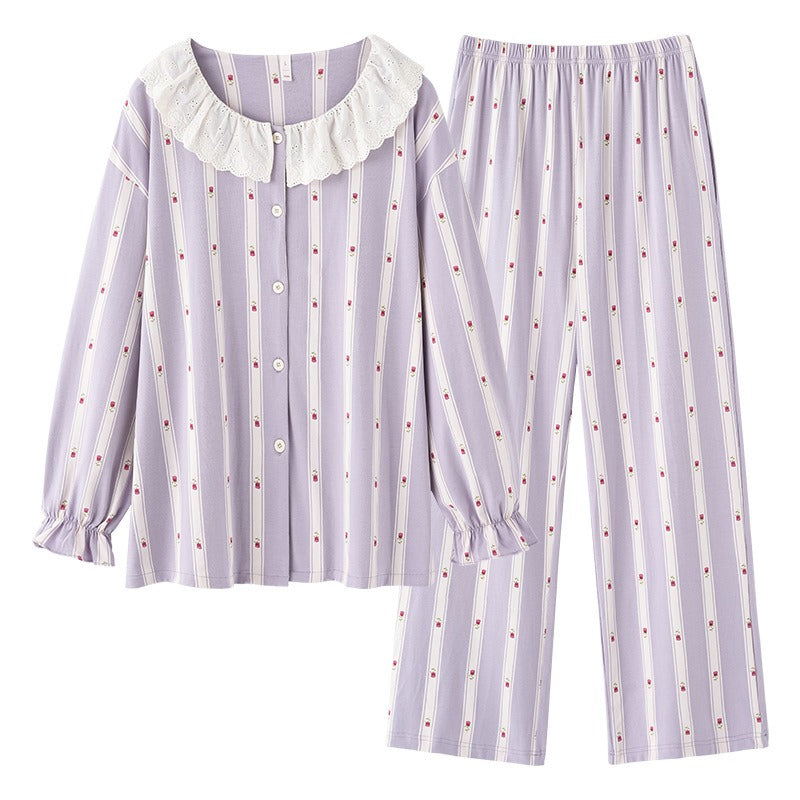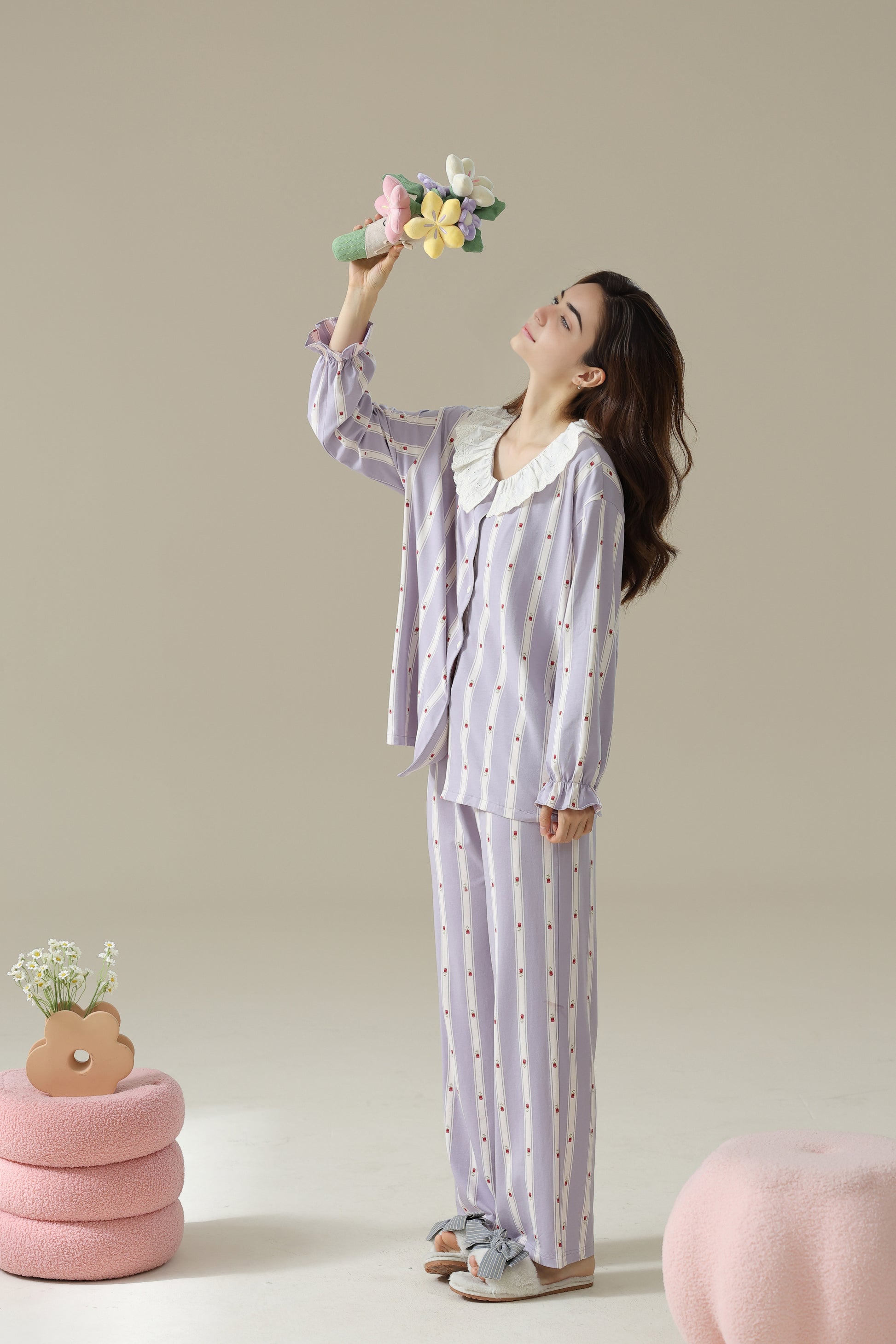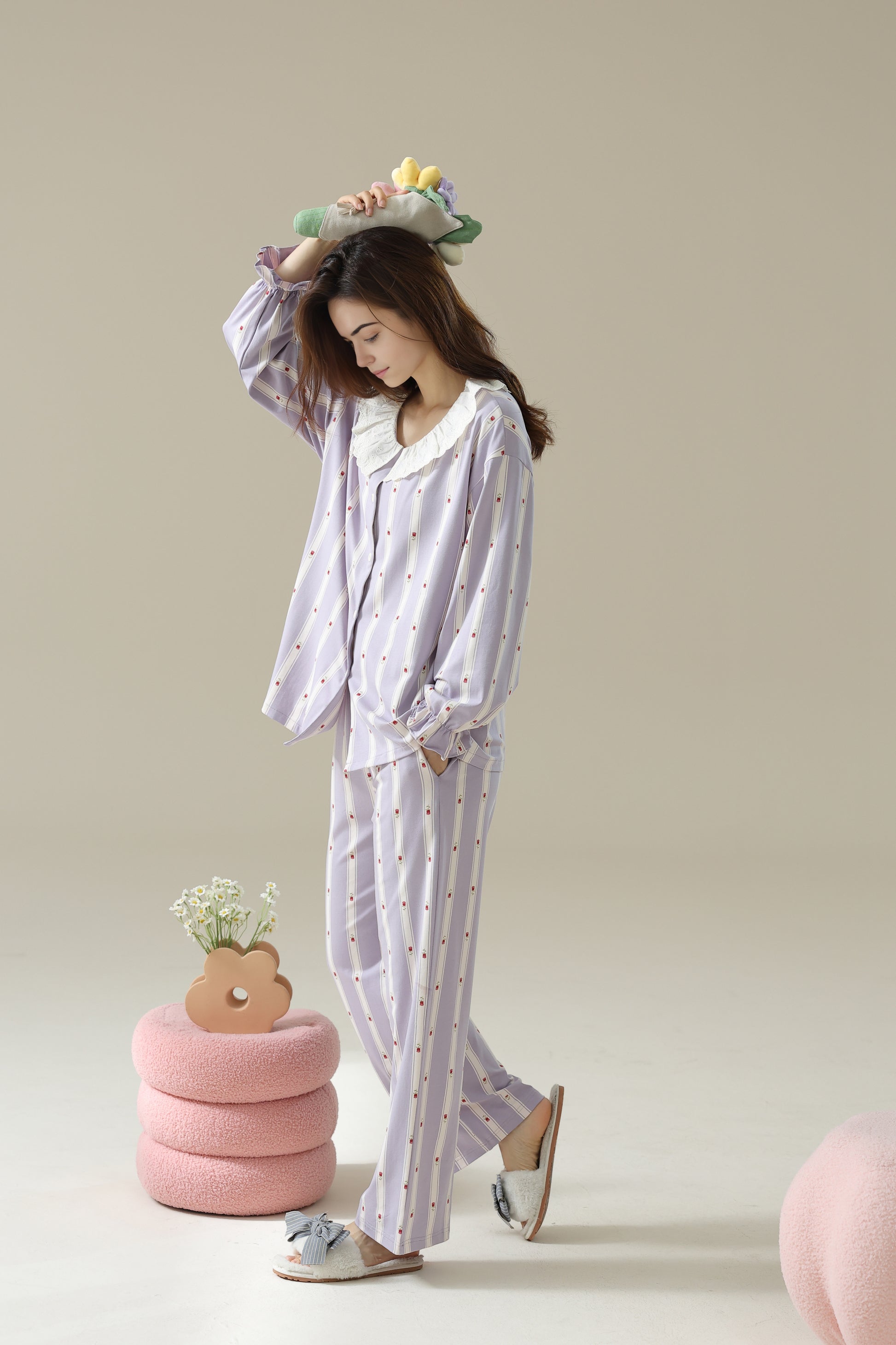 A cozy and stylish pyjama set designed for ultimate relaxation, offering a gentle stretch for ease of movement. Made from 96% cotton and 4% spandex.