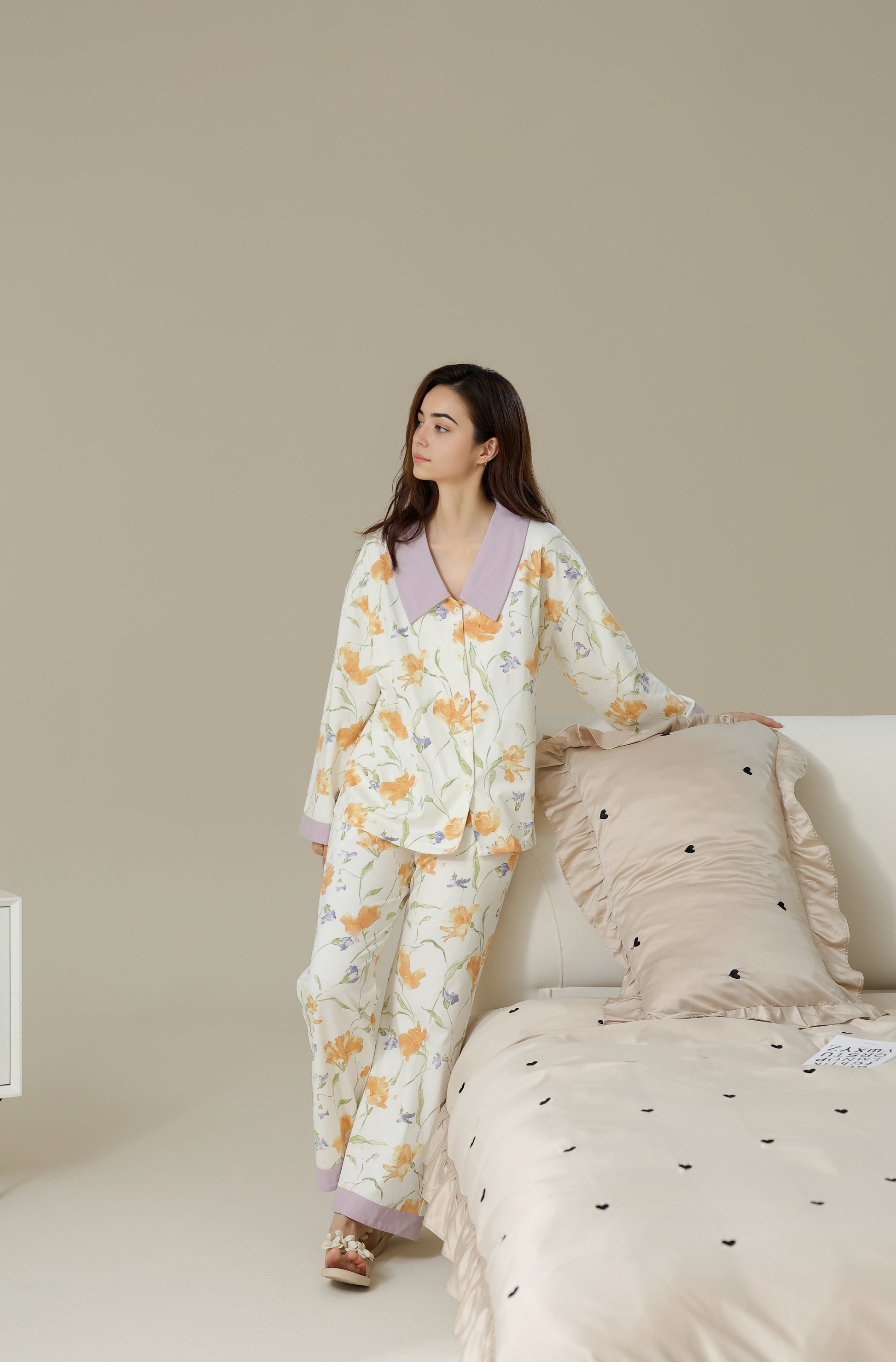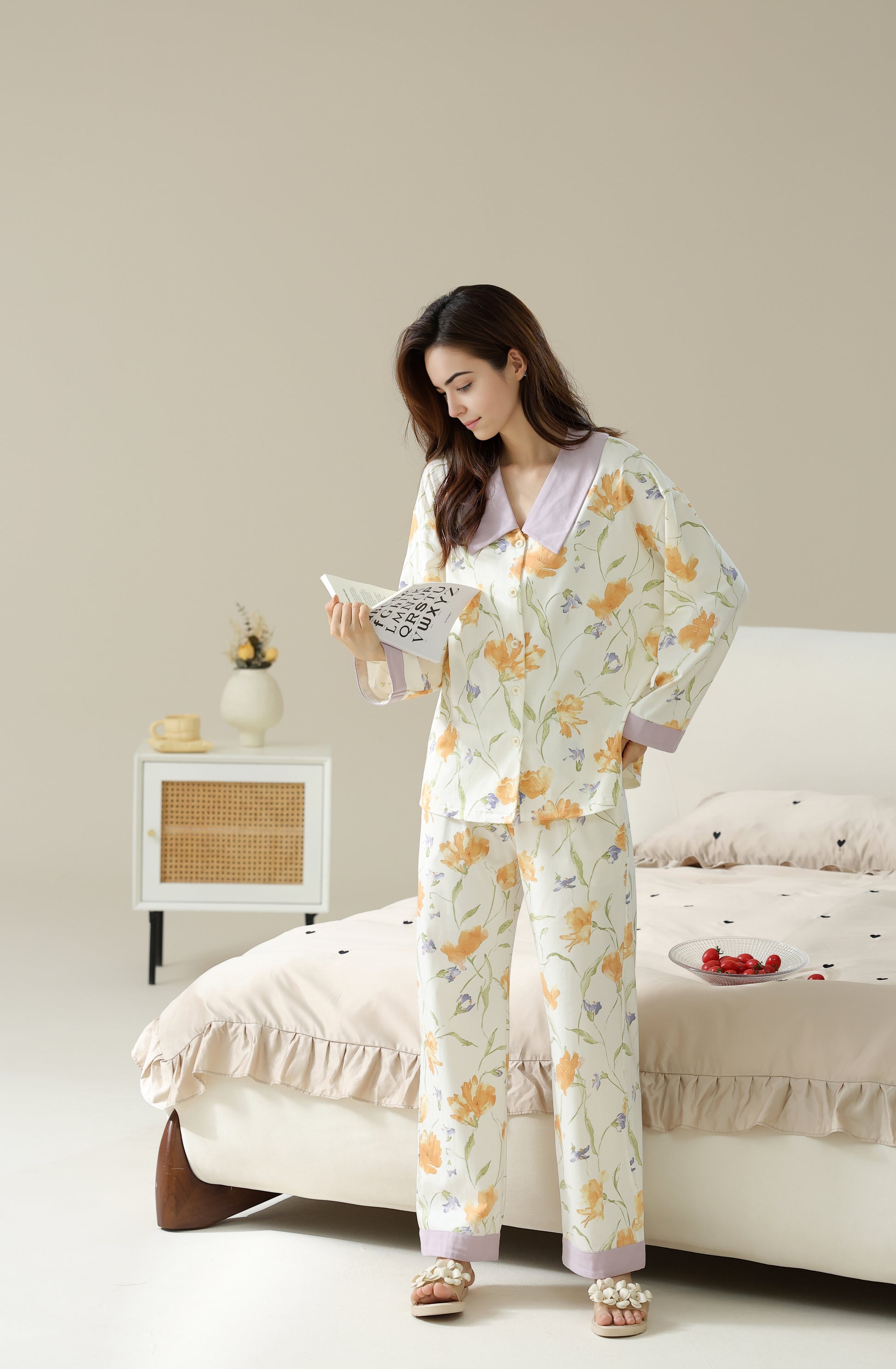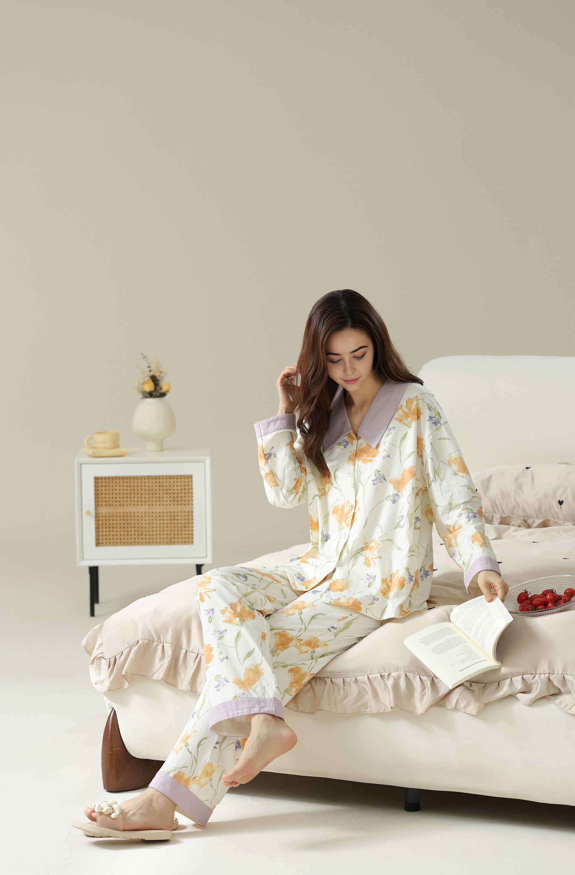A lightweight and cozy pyjama set offering comfort and ease of movement, ideal for restful nights. Made from 96% cotton and 4% spandex.